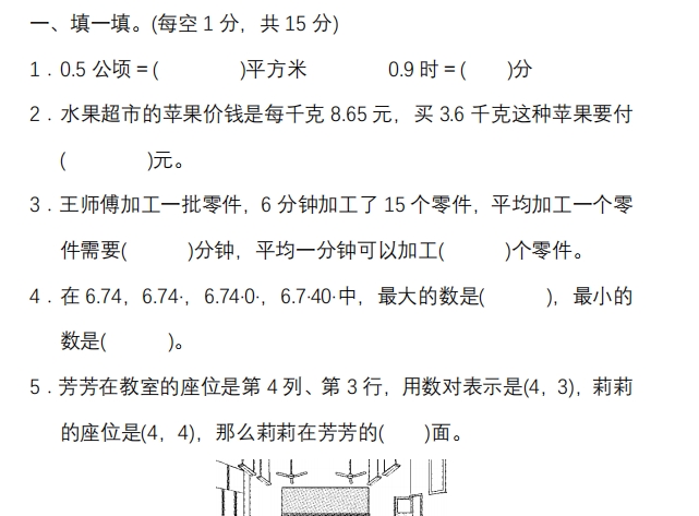 【小学数学】五年级下册76 练习二十八(西师版)