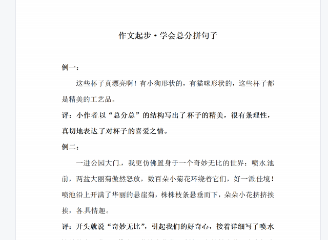 【小学语文】三年级上册习作指导-作文起步 学会“总”“分”拼句子(通用版)