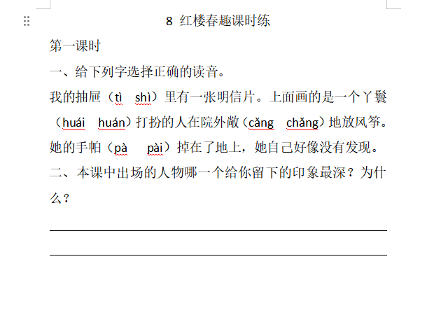 【小学语文】五年级下册第八课:课时练习(人教版)
