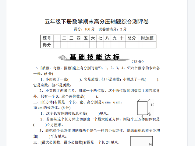 【小学数学】五年级下册期末复习高分压轴题综合测评卷(人教版)