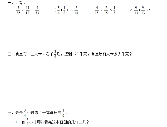【小学数学】五年级下册07 分数混合运算(1页)(通用版)