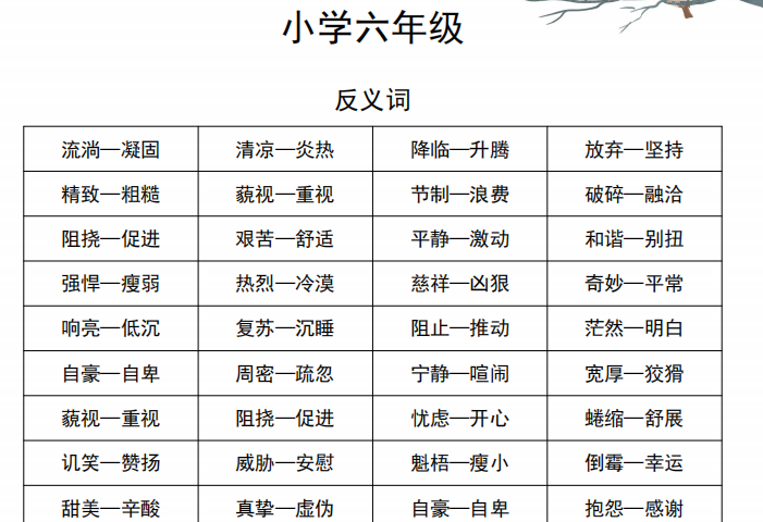 【小学语文】六年级上册近义词和反义词汇总0(人教版)