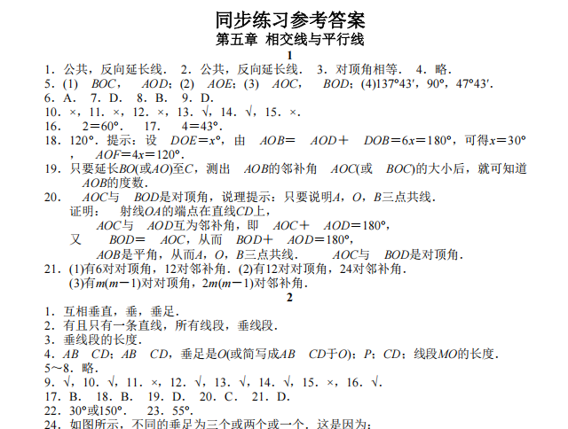 【初中数学】七年级下全册同步练习答案(人教版)