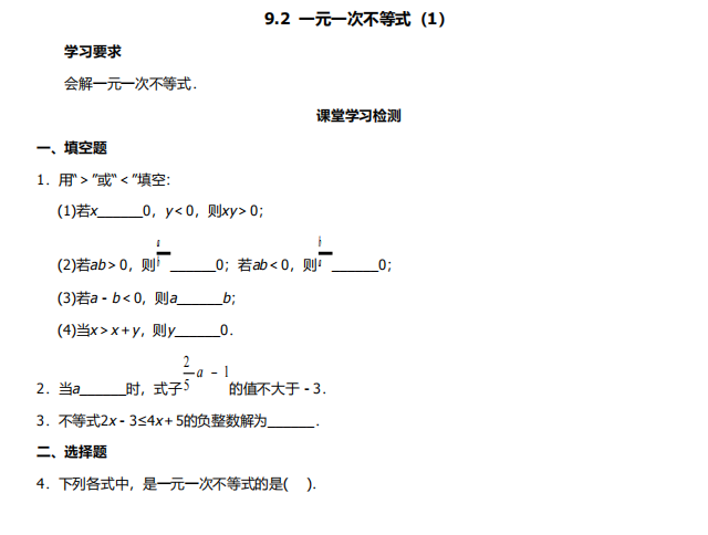【初中数学】七年级下册9.2一元一次不等式1(人教版)