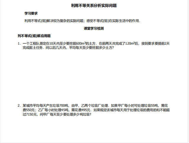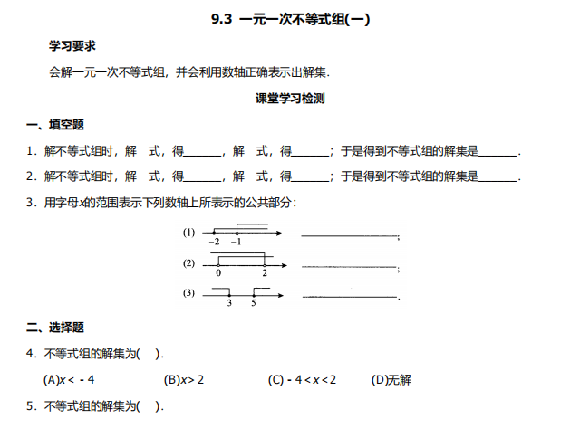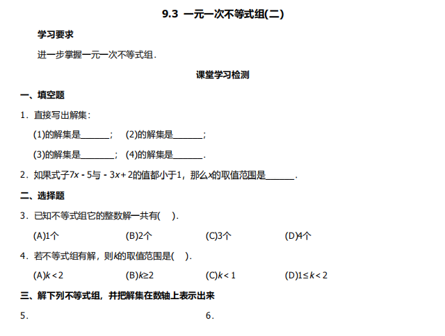 【初中数学】七年级下册9.3一元一次不等式组2(人教版)