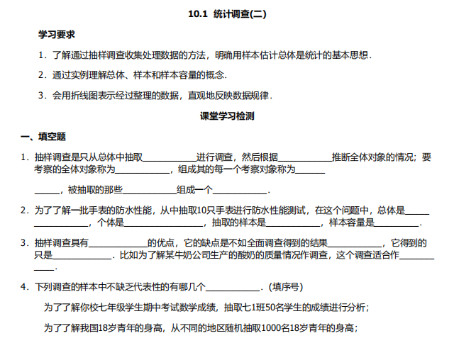 【初中数学】七年级下册10.1统计调查1(人教版)