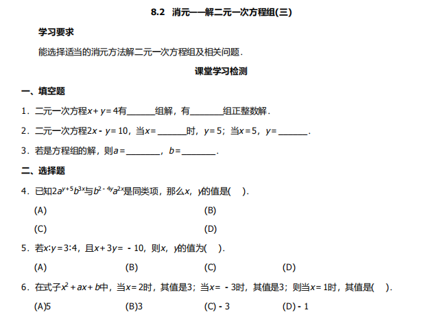 【初中数学】七年级下册8.2消元——解二元一次方程组3(人教版)