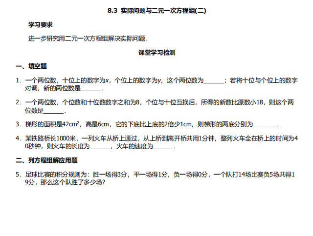 【初中数学】七年级下册8.3实际问题与二元一次方程组2(人教版)
