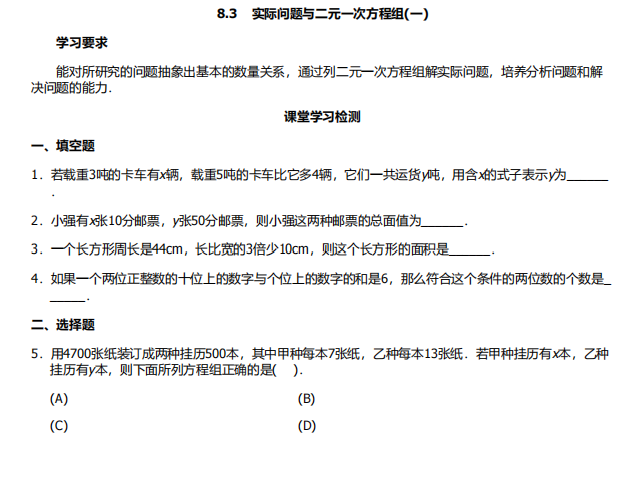 【初中数学】七年级下册8.3实际问题与二元一次方程组1(人教版)