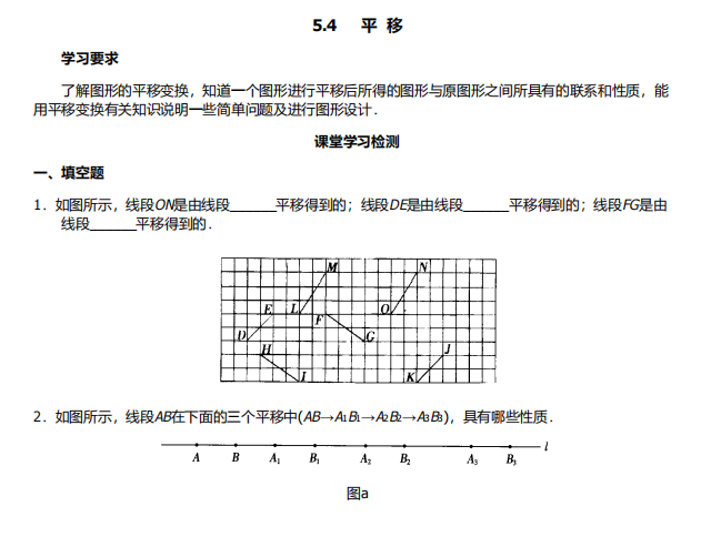 【初中数学】七年级下册5.4平移(人教版)