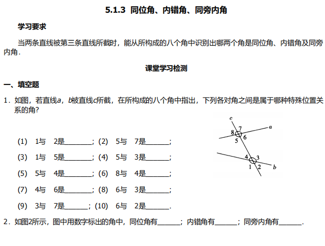 【初中数学】七年级下册5.1.3同位角、内错角、同旁内角(人教版)