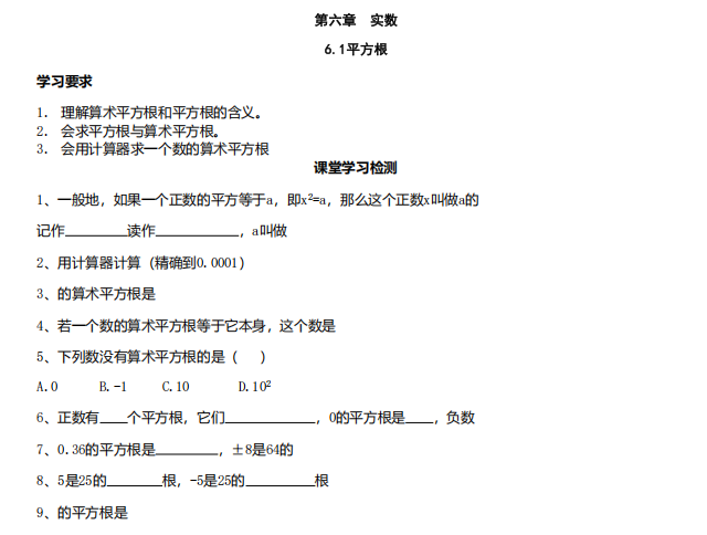 【初中数学】七年级下册6.1平方根(人教版)