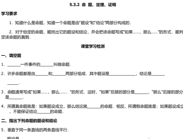 【初中数学】七年级下册5.3.2命题、定理、证明(人教版)