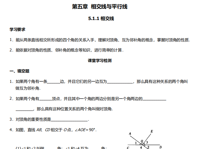 【初中数学】七年级下册5.1.1相交线(人教版)