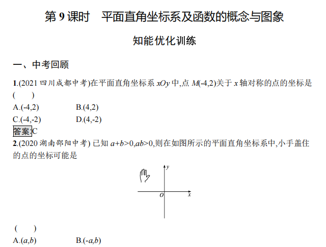 【中考总复习】数学第09课时 平面直角坐标系及函数的概念与图象