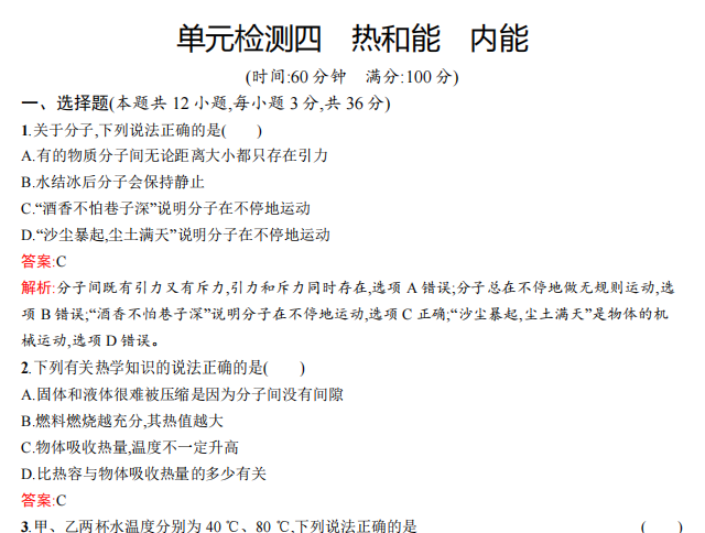 【初中总复习】物理单元检测一 运动 声 物态变化 光