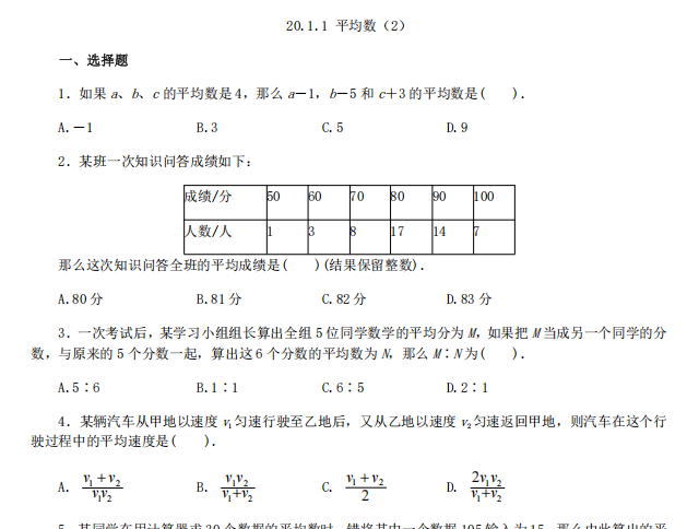 【初中数学】八年级下册20.1.1 平均数2(人教版)