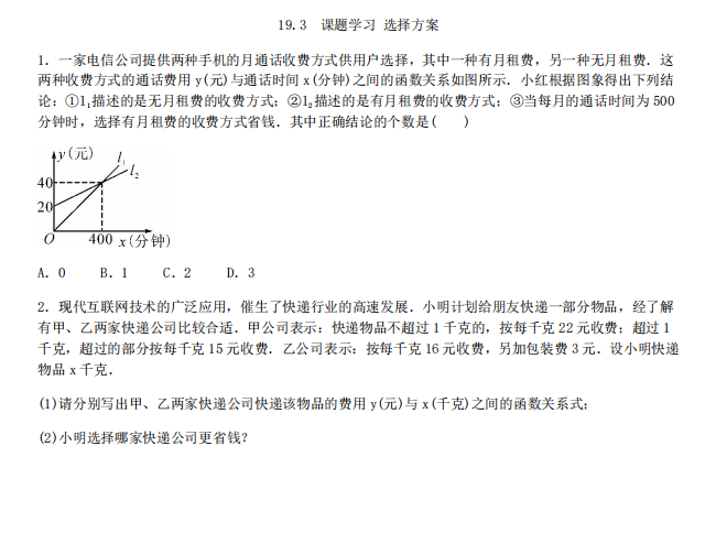 【初中数学】八年级下册19.3 课题学习 选择方案(人教版)