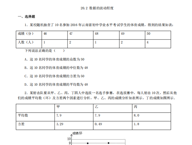 【初中数学】八年级下册20.2 数据的波动程度(人教版)