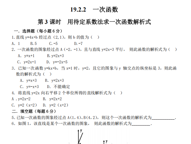 【初中数学】八年级下册19.2.2 第3课时 用待定系数法求一次函数解析式(人教版)