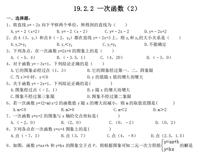 【初中数学】八年级下册19.2.2 一次函数2(人教版)