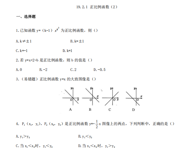 【初中数学】八年级下册19.2.1 正比例函数2(人教版)