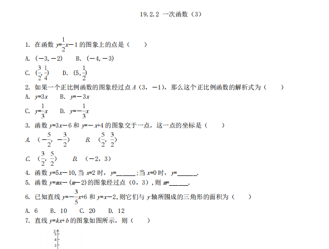 【初中数学】八年级下册19.2.2 一次函数3(人教版)